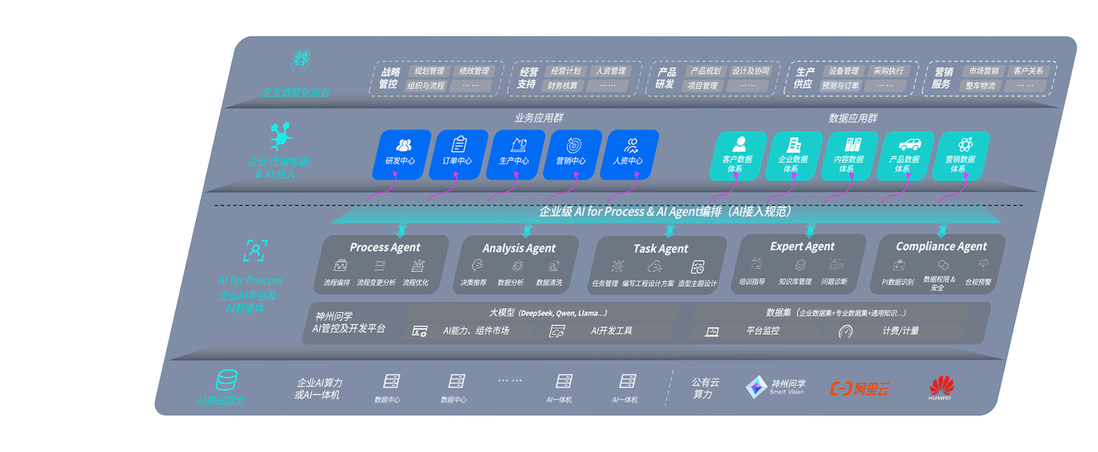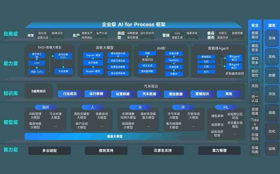 端到端的一站式AI工作空间深度融合了从企业战略规划到日常经营的全流程业务板块,,定向解决车企内部领域多、、、、部门多、、、、链条长、、、场景碎片化等难题,,,支持车企快速构建以AI为核心的生产力写作体系,,,实现任务执行与AI能力的无缝集成与交互